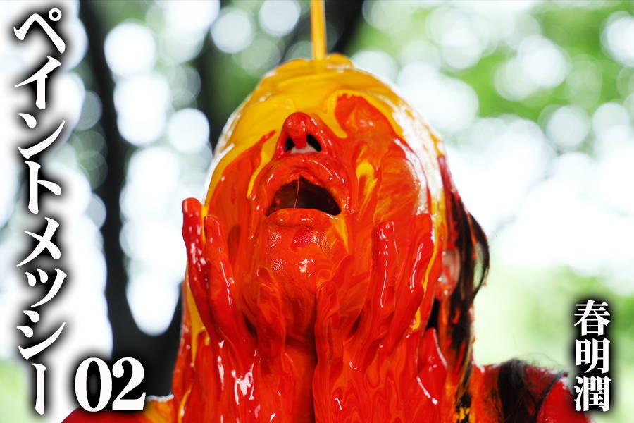 赤ペイントに身体が染まっていくごとに、そのM性ゆえに反応して感じてしまい、メッシーの虜になった春明潤。全身真っ赤になり、積極的に口の中にも絵具を入れて味わう…。赤に続き、黄色も混ざっていき、どんどんドロドログチャグチャに…。赤・黄色のあとは、真っ黒いペイントをかけられていく!3色の混ざり具合がイイ感じで「キレイに汚く」していきます!まるで重油をかぶったかのような真っ黒い姿で、野外に出ると、外の新緑の緑との「美と汚さ」のコントラストとなる! 自分が汚くされた事に興奮した春明は雨に打たれながらオナニーに耽る!「ペイントの混ざり具合」「モデルの汚れっぷり・ドMっぷり」「屋外の緑を背景にしている」など、ハイクオリティなペイントメッシー映像です!※この映像は、私有地であるスタジオにて、所有者の承認を得て撮影をされたものです。また不特定多数の目に触れることの無いように撮影されたものです。